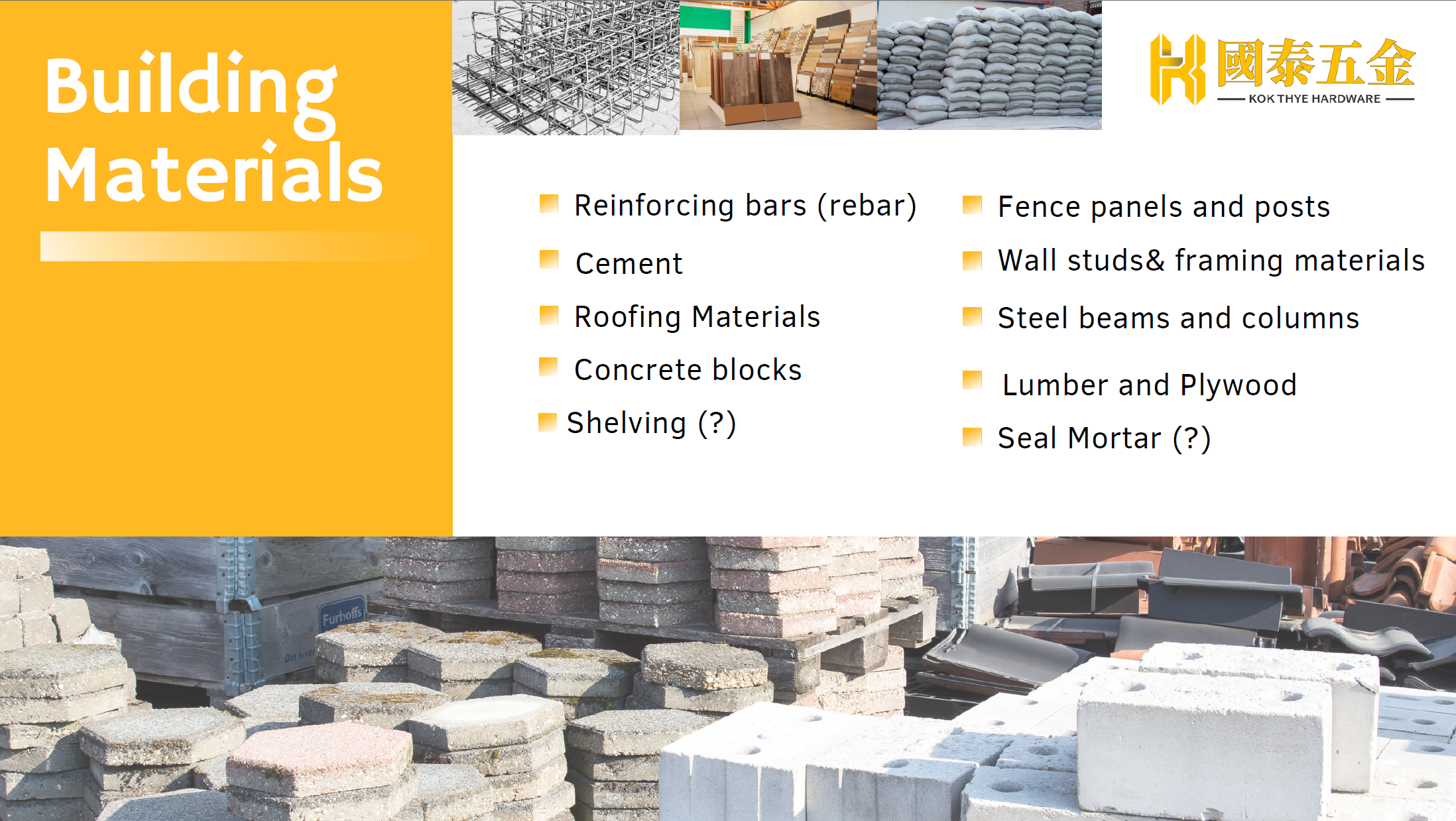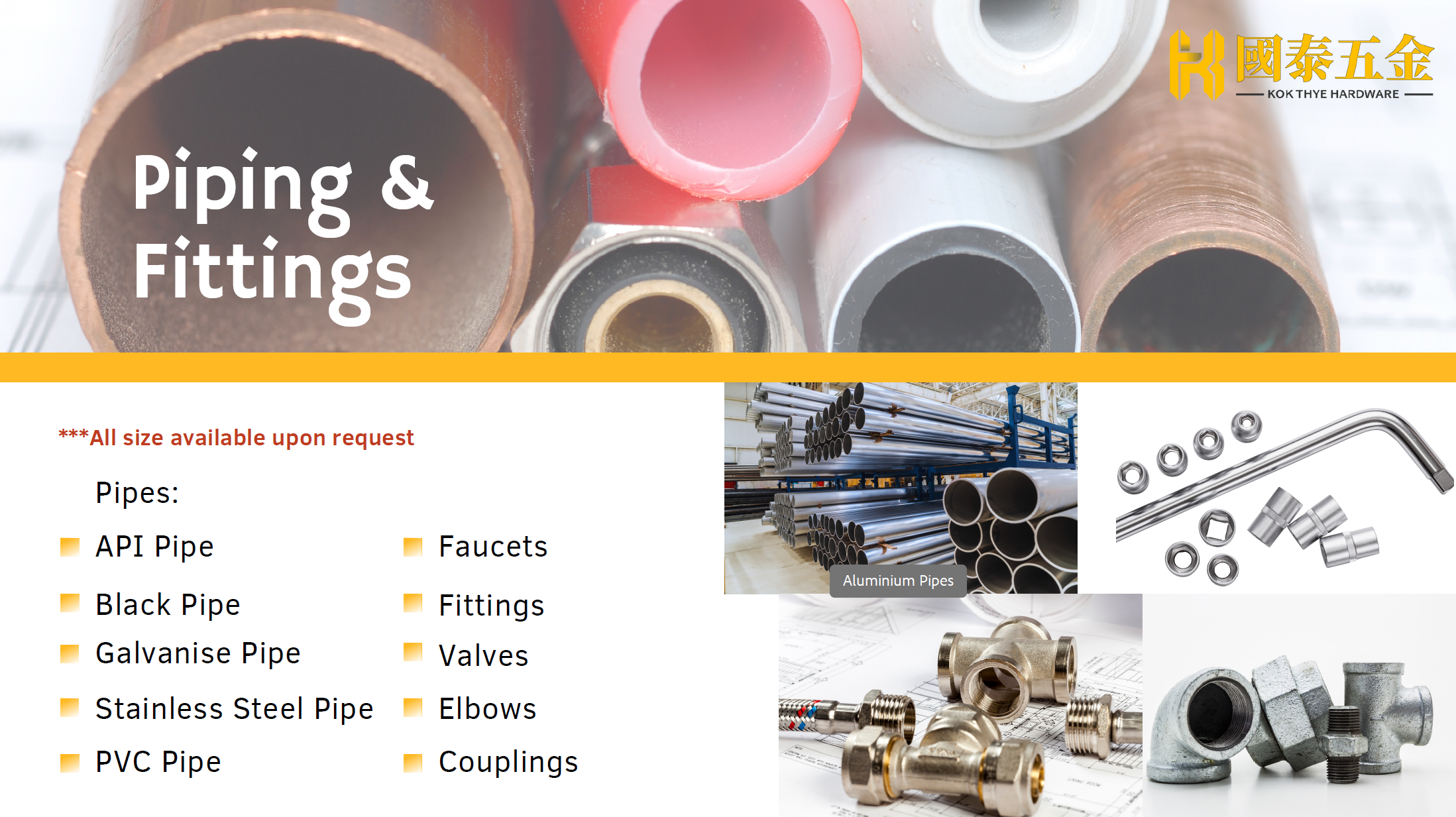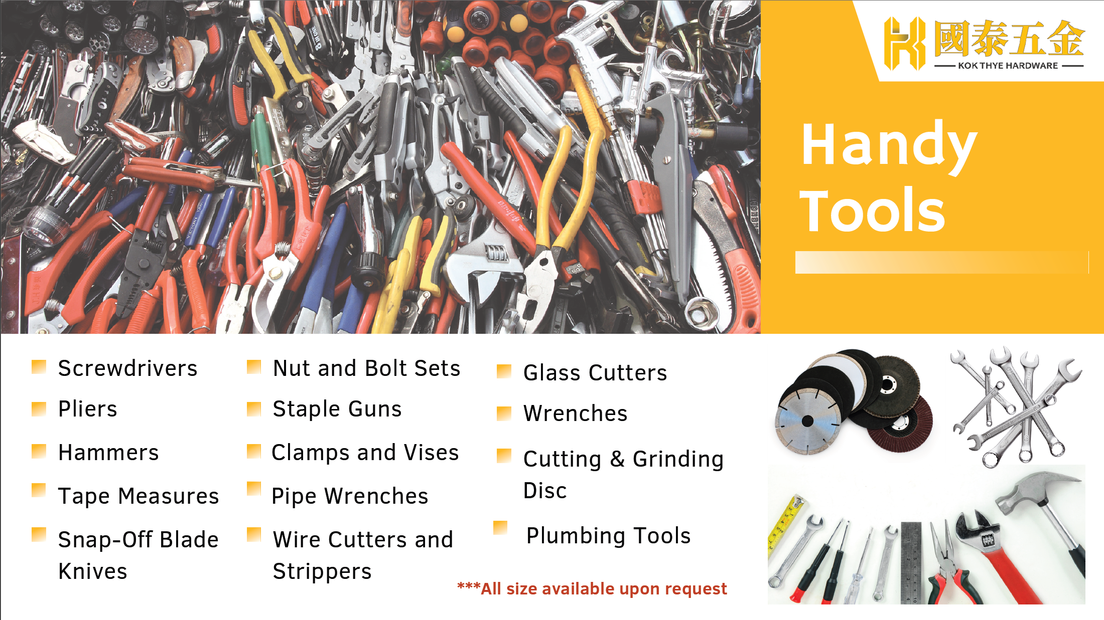 Founded in 1961, Kok Thye Hardware Trading Sdn. Bhd. is one of the Klang’s oldest and most respected hardware suppliers. What began as a humble home-based business has grown into a multi-generational company serving over 5,000 customers with a wide range of quality hardware solutions. Built on a legacy of commitment, consistency, and trust, we continue to innovate while staying true to our roots — delivering reliable service, sourcing expertise, and tailored support for every project.